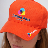 文字に縁をつけたプリントです。なかなか難しい6方キャップの正面にも問題なく転写出来ます。